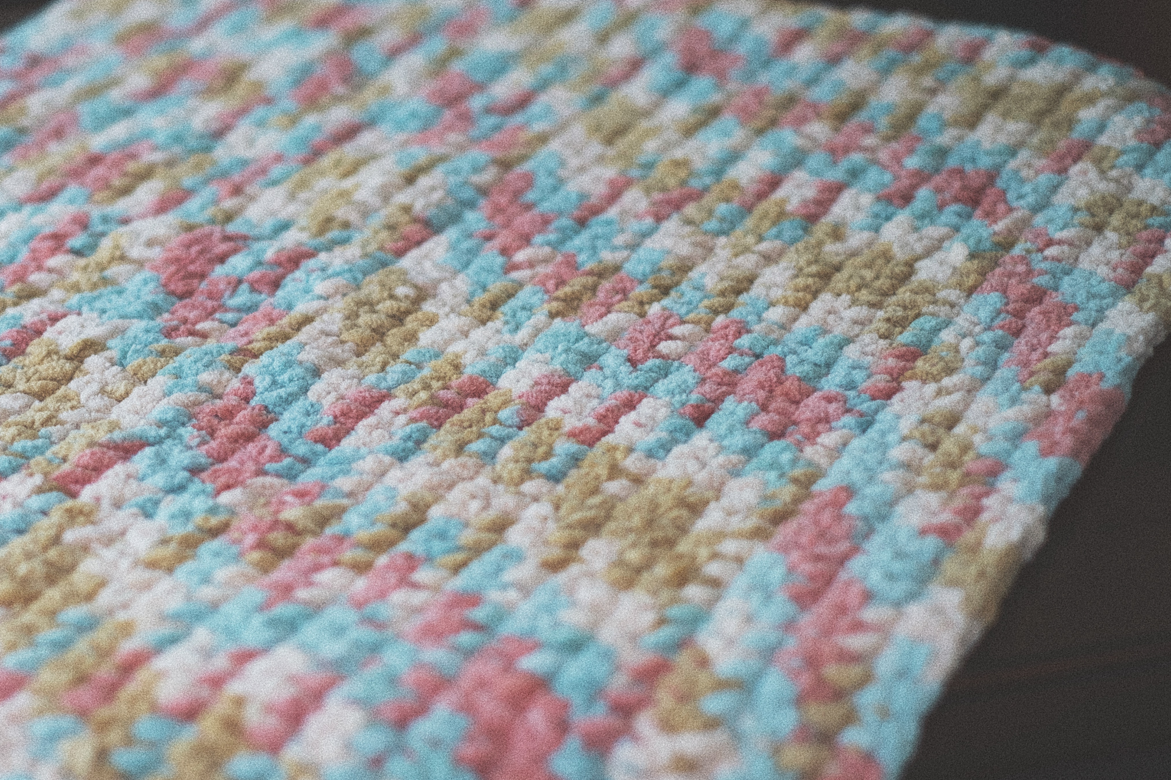 My second blanket was a bit of a breather for me, it’s a simple square blanket made out of multicolor yarn, no changing colors necessary! I wanted to step back to the basics and see how multicolored yarn presented itself upon crocheting. It turned out very nice, and is super cute!