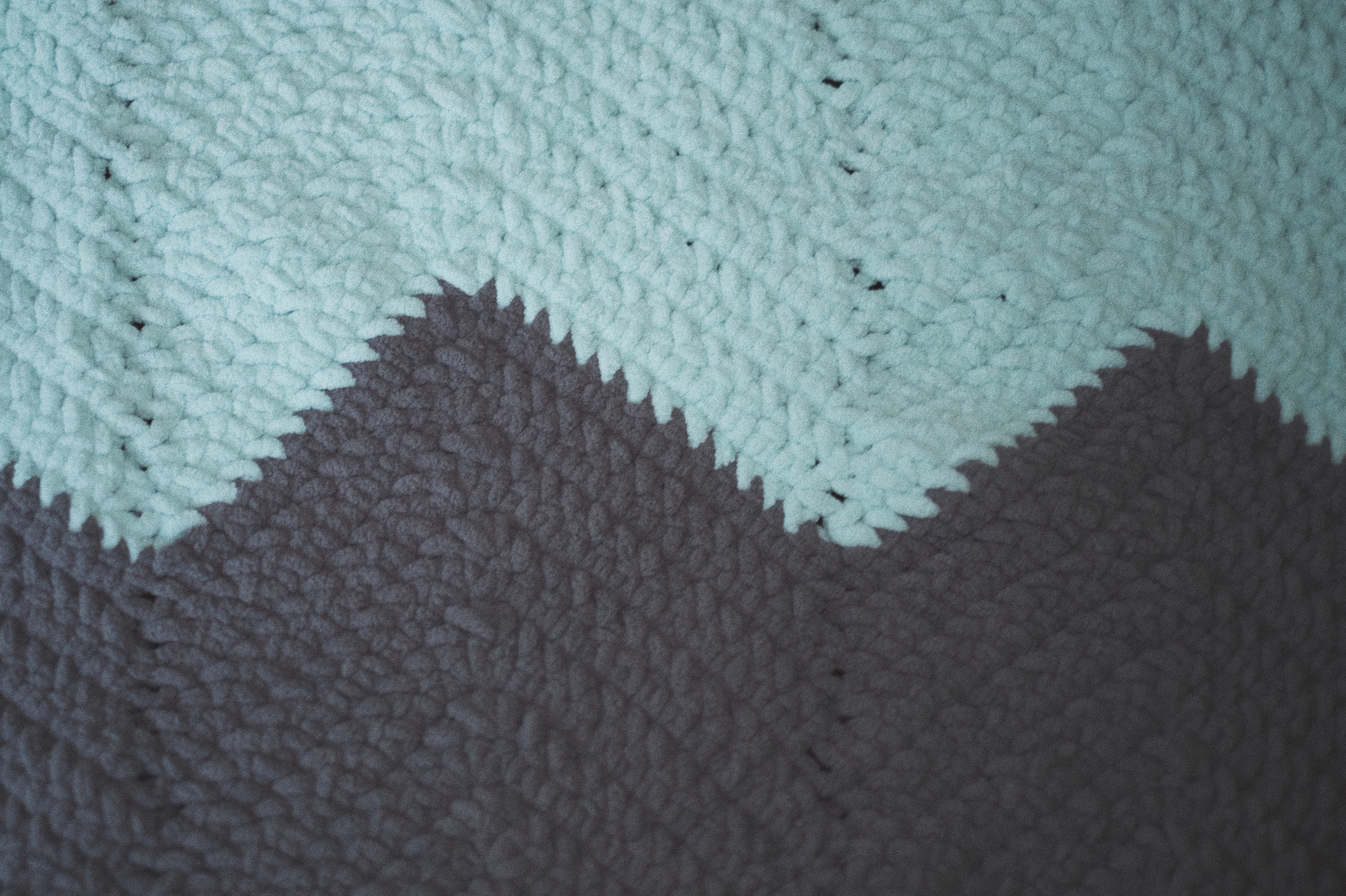 My first blanket is a two-toned chevron blanket, which was a new pattern that I was super interested in learning. I had a lot of fun bringing this one together, and since changing colors in a project was still a new skill to me, I only did it once. I really wanted to focus on the pattern for this blanket.